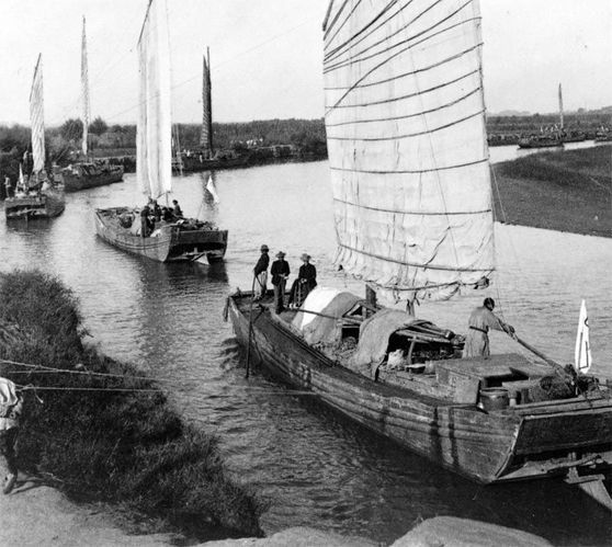 由当地民船组成的美军运输船队通过白河向北京运送物资。