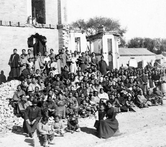 1900年,英、美、法、俄、德、日、意、奥八国组成侵略联军,于1900年6月,由英国海军中将西摩尔率领,向北京进犯。图为英军从沙窝门的下水道进城,引来一群京城百姓围观。