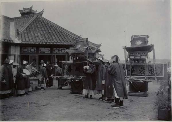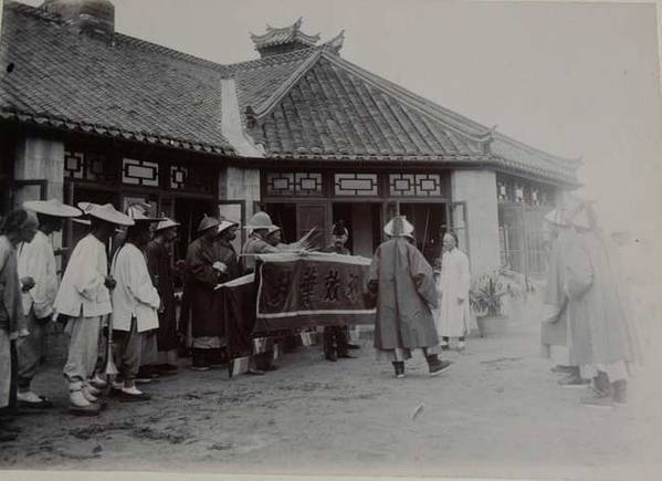 大清官员给八国联军送锦旗褒奖联军在北京的所作所为,旗上写着“祝效华封”(祝其寿,祝其福,祝其多男子)。
