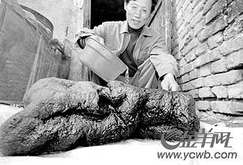 特点:手感和肉一样;它夏天不会因气温高而腐烂,冬天也不会因温度低而僵硬;它身上的“伤口”能够自动愈合;它无异味且在不断地长大。长约52厘米、宽约40厘米、厚约20厘米。 沈阳太岁 发现时间:2005年发现地点:沈阳新城子区清水台特点:黑乎乎、软绵绵的就像海绵,还有根