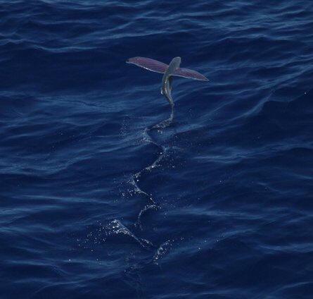 世界上大约有50种飞鱼,事实上它们不是飞行,而是利用有力的胸鳍从水中一跃而起。大部分飞鱼生活在热带水域。据观察,有些飞鱼跃起后,可在水上滑翔长达45秒。然而为什么它们要跃入空中呢?这可能是因为空气比水的阻力更小,它们通过跃入空中的方式,更快地前进。至少在它们需要呼吸以前,它们都可以一直呆在空中。