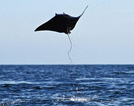 蝠鲼属于蝠鲼属。它们可以生长到17英尺宽,10英尺长。这些强健的鱼儿能从水中跃出几英尺高,不过目前人们还不清楚它们是如何做到这些的。