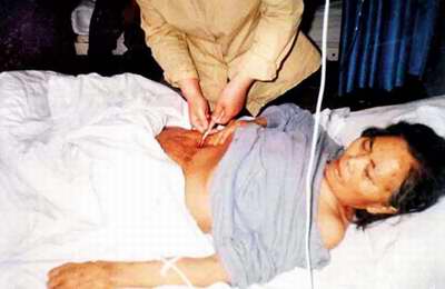 第二天上午张玉奇像往常一样准备给我母亲换药,当他掀开被子一看,眼前的一切让他惊呆了,纱布、绷带、肚子、床单上全是溢出的肠液。我跑去叫江四峰,他回答说‘拉肚子,服易蒙停。’我母亲昨夜就停止排便了,他竟能说成是拉肚子!”